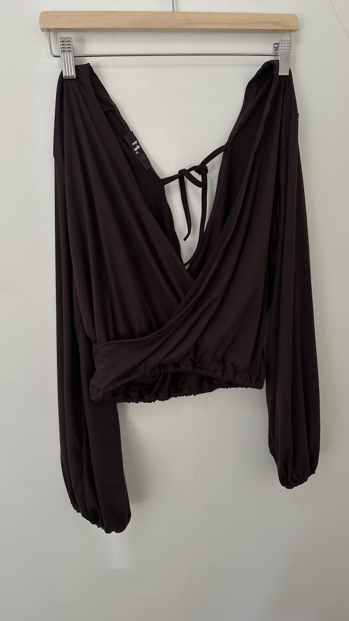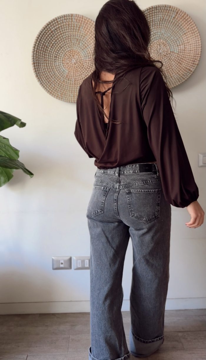 Blusa con mangas anchas y puños elasticados, confeccionada en lycra piel de durazno (suave y elasticada). También le agregamos elástico en la cadera para lograr una mejor caída del escote y amarras en la espalda para poder ajustarla a tu medida.