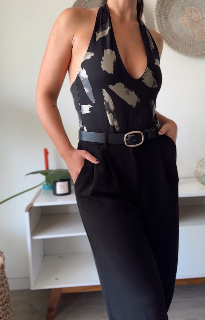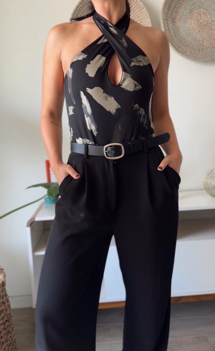 Body confeccionado en doble lycra fría, lisa por dentro y con un estampado con detalles metalizados por fuera.