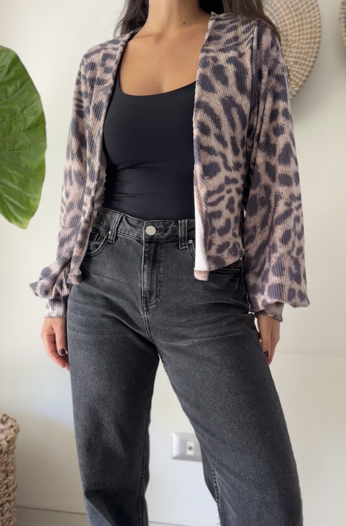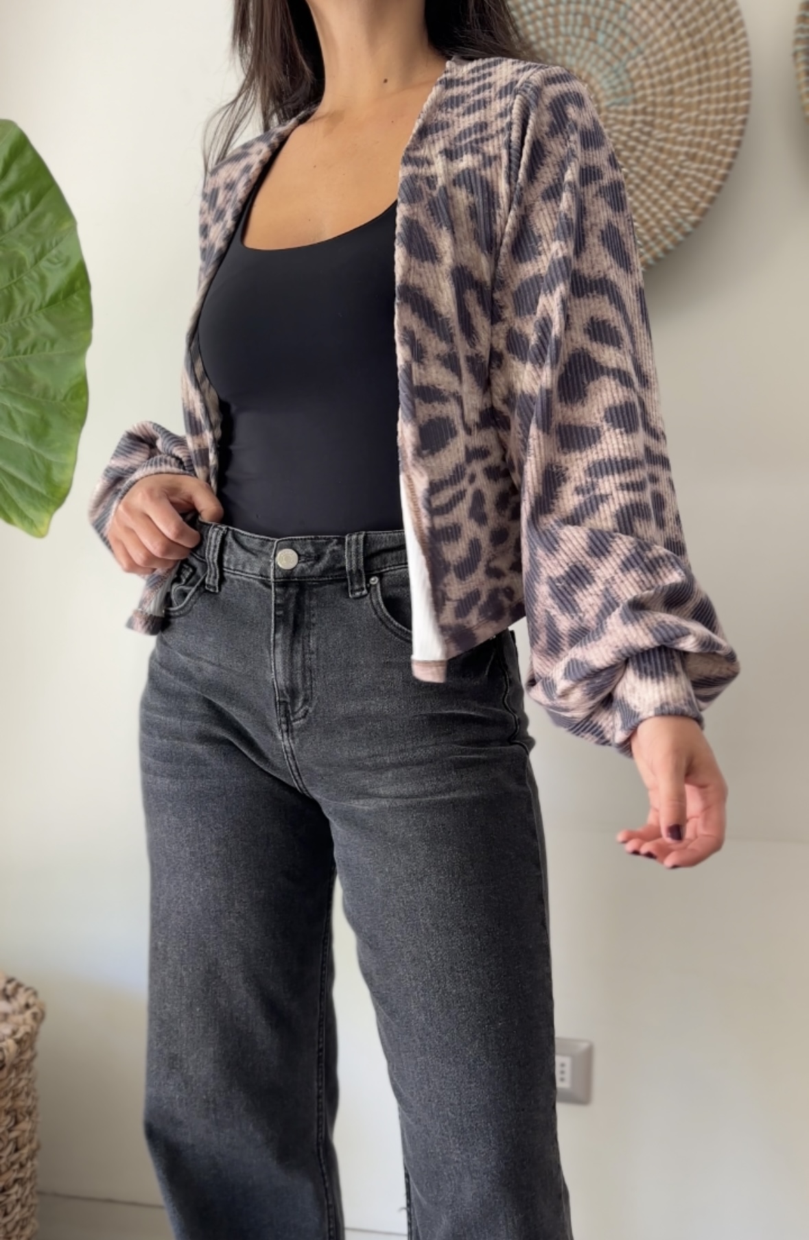 El chaleco ideal para elevar un outfit básico. Las mangas aglobadas y el estampado animal print son la combinación perfecta!