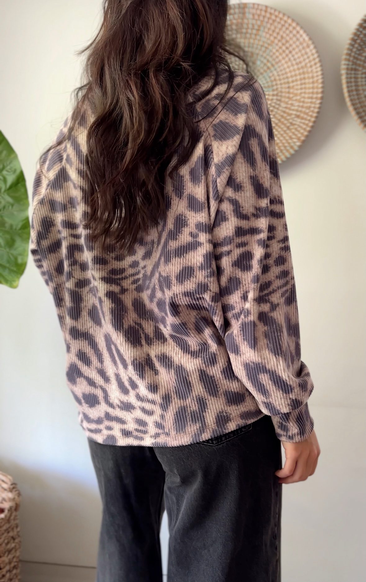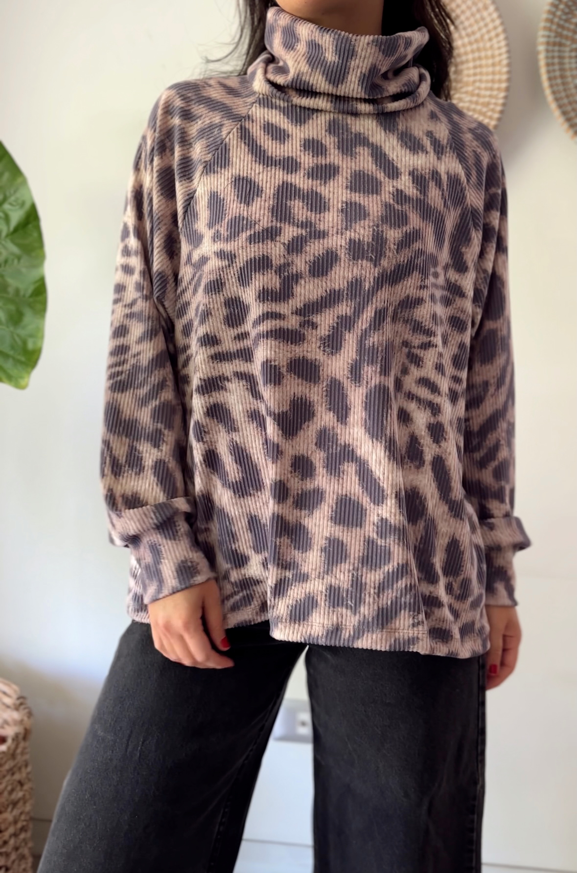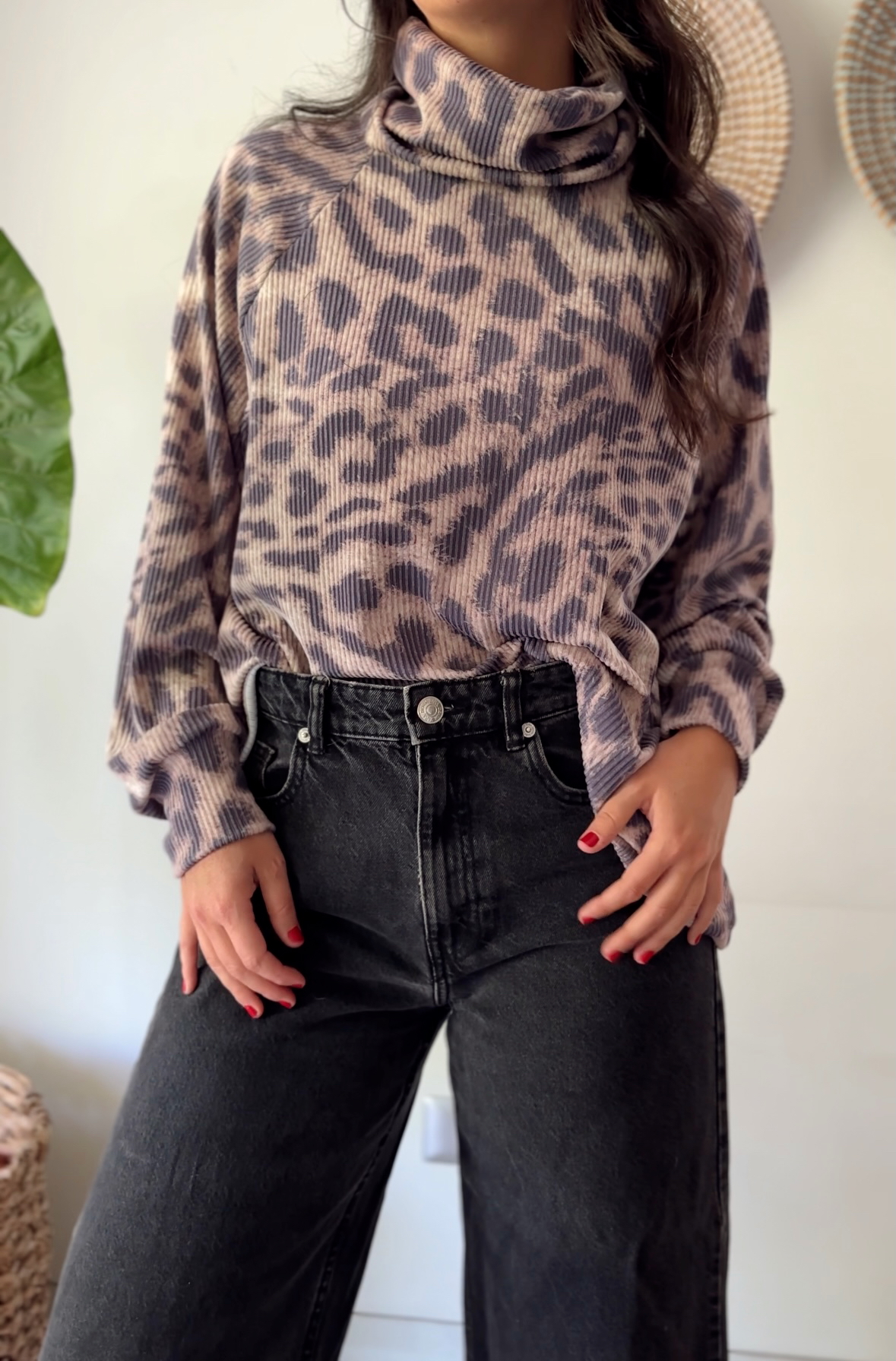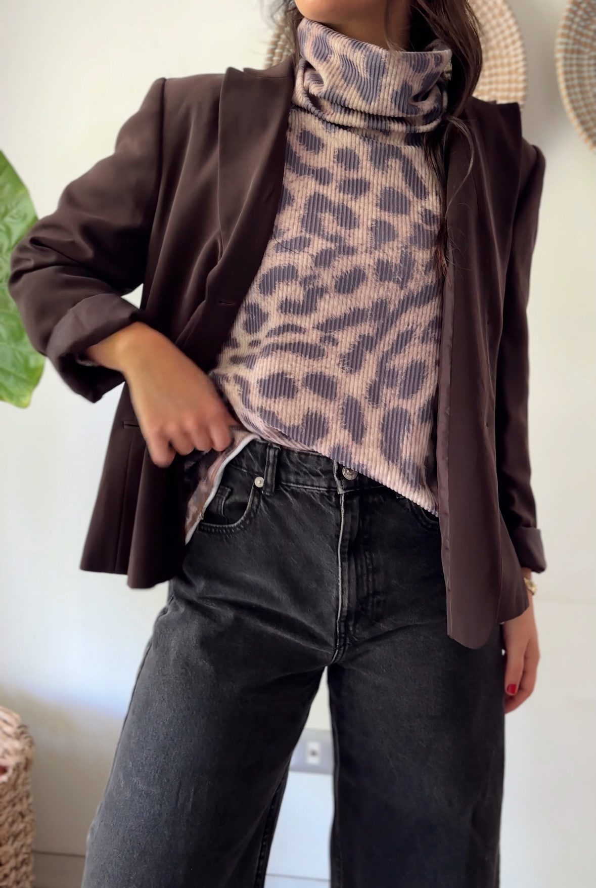 Nuestro clásico chaleco con cuello tortuga, pero esta vez confeccionado en una tela de punto grosor medio con estampado de leopardo. Este grosor es ideal porque como segunda capa abriga perfecto y queda muy cómodo al ponerse una chaqueta encima.