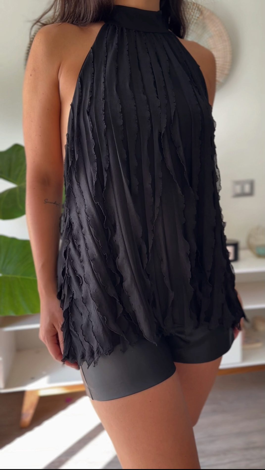 El cuello halter es de nuestros favoritos! Estiliza mucho la parte de los hombros/cuello y la puedes ajustar con las amarras. Espalda rebajada.